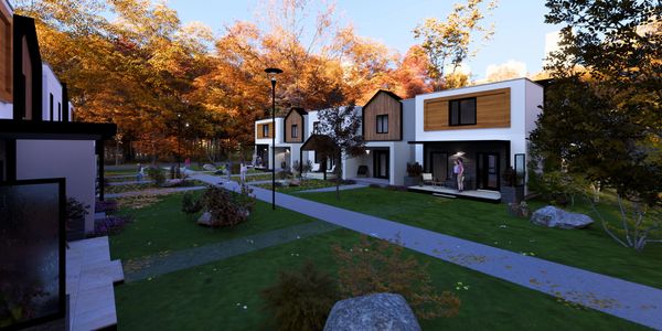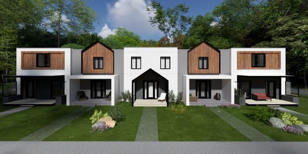 The VARO Village Townhouses are a Contemporary arrangement of 5 Townhouses, each being 1,300 sq.ft. with 9' ceilings, 3 Bedrooms and 2 Bathrooms, with high-end finishes, front Verandas, a backyard Deck and a detached 2-Car Garage.